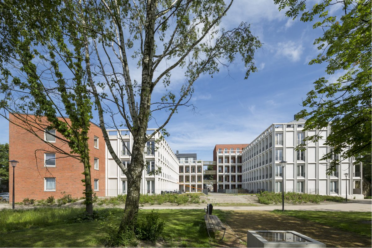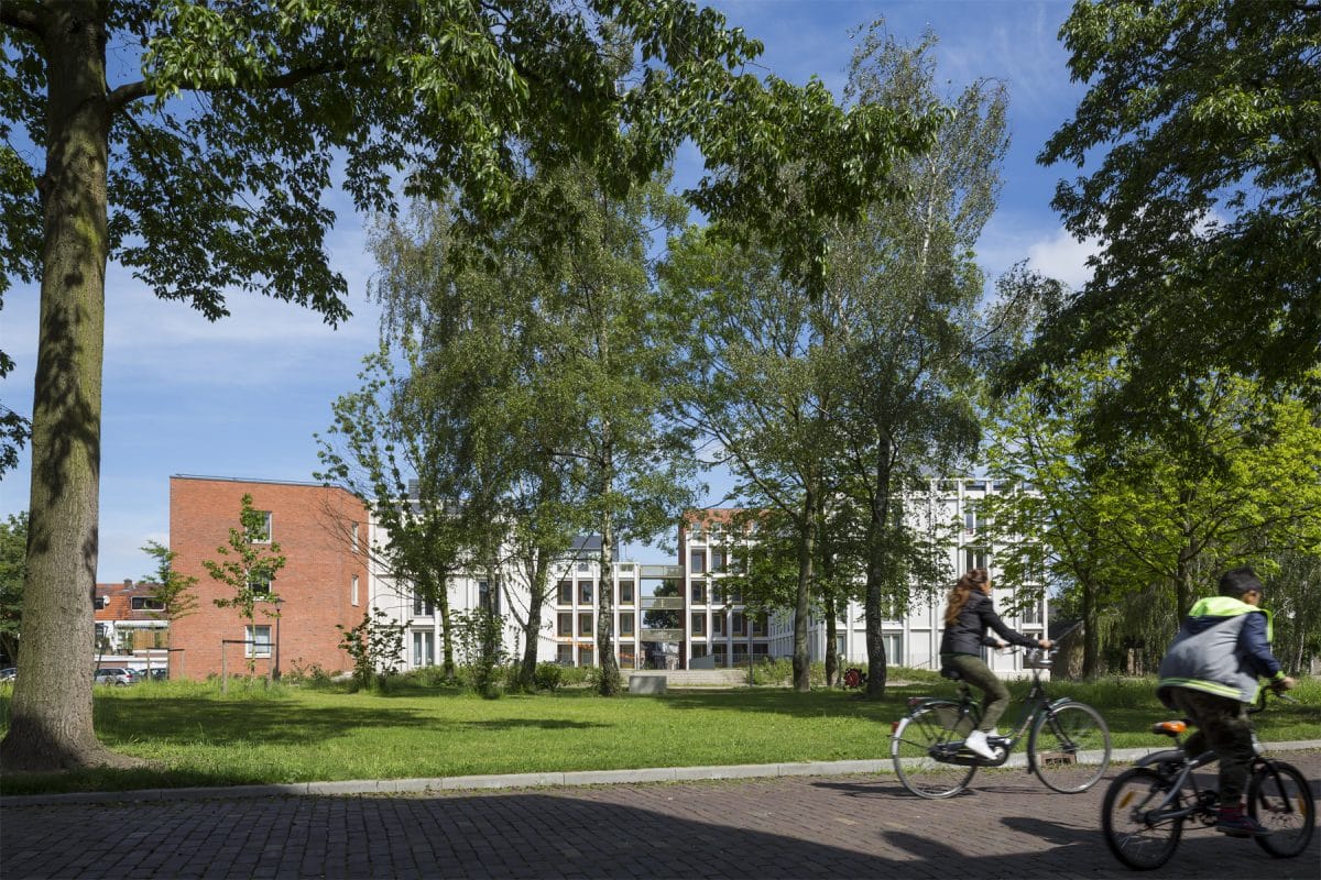 De uitwerking van de gevels ondersteunt de stedenbouwkundige werking. Aan de Oosterstraat zijn de gevels van rode baksteen. Aan de parkzijde zijn de gevels opengewerkt, met loggia’s en galerijen binnen een raster van prefab-betonnen penanten en waterlijsten. De oostvleugel staat als een paviljoen in het park, terwijl de afgeschuinde westvleugel de lijn van de oude touwbaan volgt. Deze westvleugel vormt tevens de ruimtelijke begrenzing van het naastgelegen binnenterrein.